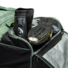 The Meridian Gear Bag started off as a blank piece of paper project. It has been engineered specifically around the key items the bag needs to carry and keep organised. Comprised of four specific compartments; a boot/knee brace locker with pull out waterproof lining, padded helmet compartment, integrated goggle vault with a separate stash for lenses, roll-offs and a generously sized main section that can handle all your protective gear with ample room for multiple kits for that race day assault.